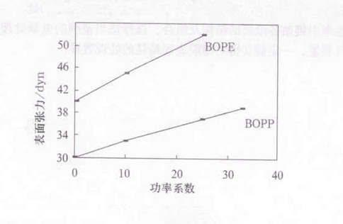 3.電暈處酗L功率的選擇。不同的材料要達到相應(yīng)的濕潤張力根據(jù)其速度、寬度不同,應(yīng)選擇不同功率的處理機,功率系數(shù)如下圖所示。