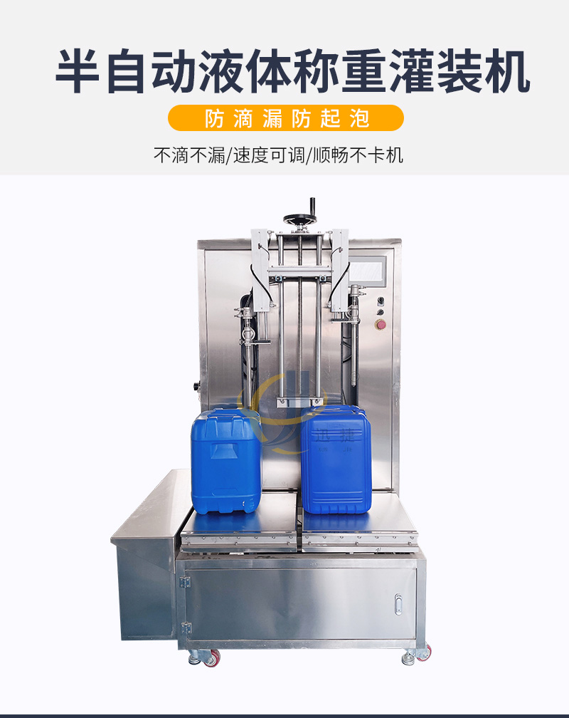 半自動(dòng)液體稱重灌裝機(jī)適用于各種水劑以及高泡類液體的灌裝。如:飲料、醋、醬油、液體化妝品、蛋白液、玻璃水等。