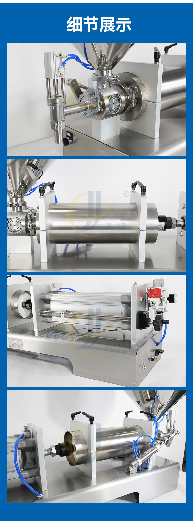 該機(jī)為半自動膏體灌裝機(jī),是日化行業(yè)、醫(yī)藥行業(yè)、食品行業(yè)、油墨行業(yè)和涂料行業(yè)的理想灌裝充填設(shè)備,灌裝悶頭采用防滴漏。